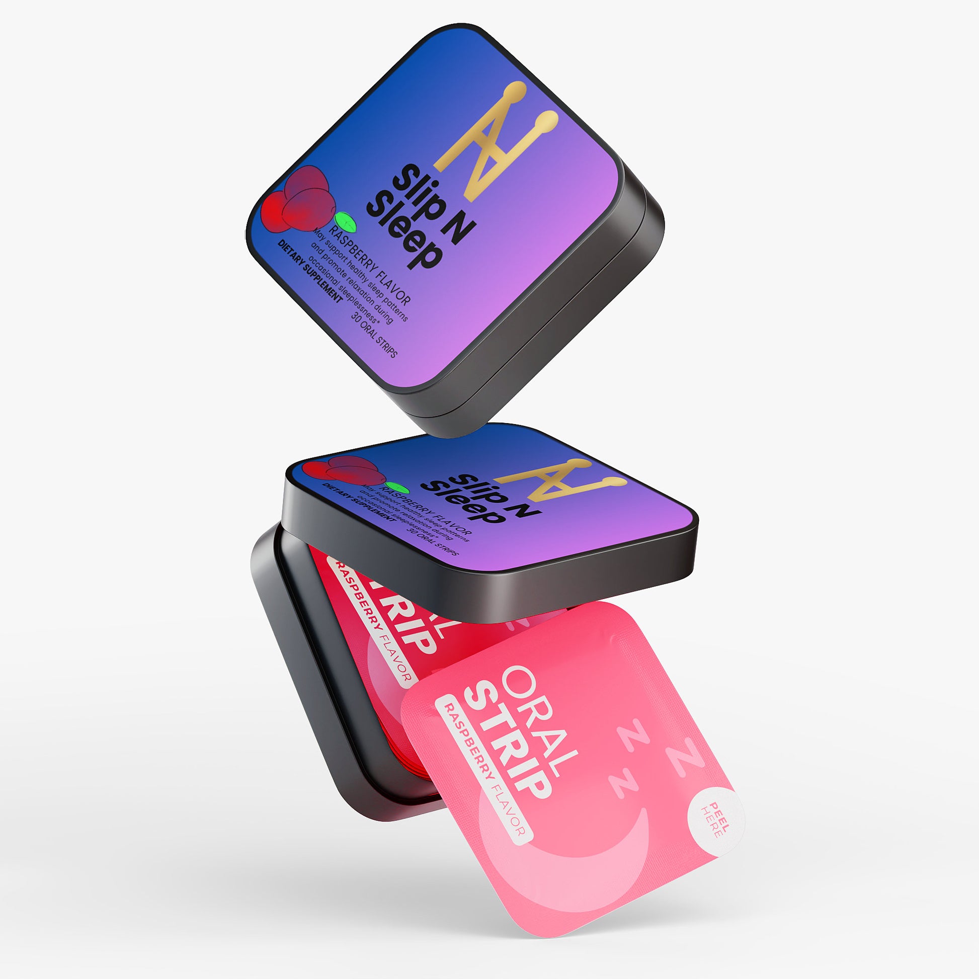 Ingredients: Pullulan, Valerian root extract, Lavender extract, Chamomile extract, Hibiscus extract, Cellulose, Raspberry Flavor, Malic acid, Xylitol, Lecithin, Erythritol, Sorbitol Syrup, Medium Chain Triglycerides, Steviol Glycosides, Melatonin